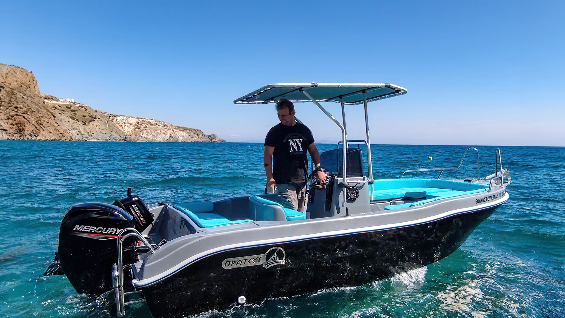 Explore the beauty of Milos at your own pace with our Thalassopetra series. These easy-to-navigate boats are perfect for those who want to captain their own adventure without needing a license. Enjoy the serene waters and hidden coves of Milos.